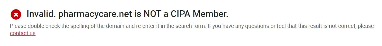 Checking for local and international approvals is at the core of what we do here. They have now and then helped us in identifying fake and legit websites. So, according to the Canadian International Pharmacy Association (CIPA), we found out that Pharmacycare.net is not on 49 lists of verified pharmacy websites.