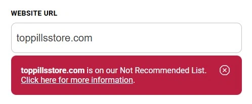 TopPillsStore.com has been classified as a rogue pharmacy by LegitScript.com, confirming that it does not meet regulatory safety standards. It is also listed on the NABP’s “not recommended” list, further proving that it is not a trustworthy source for purchasing medications.